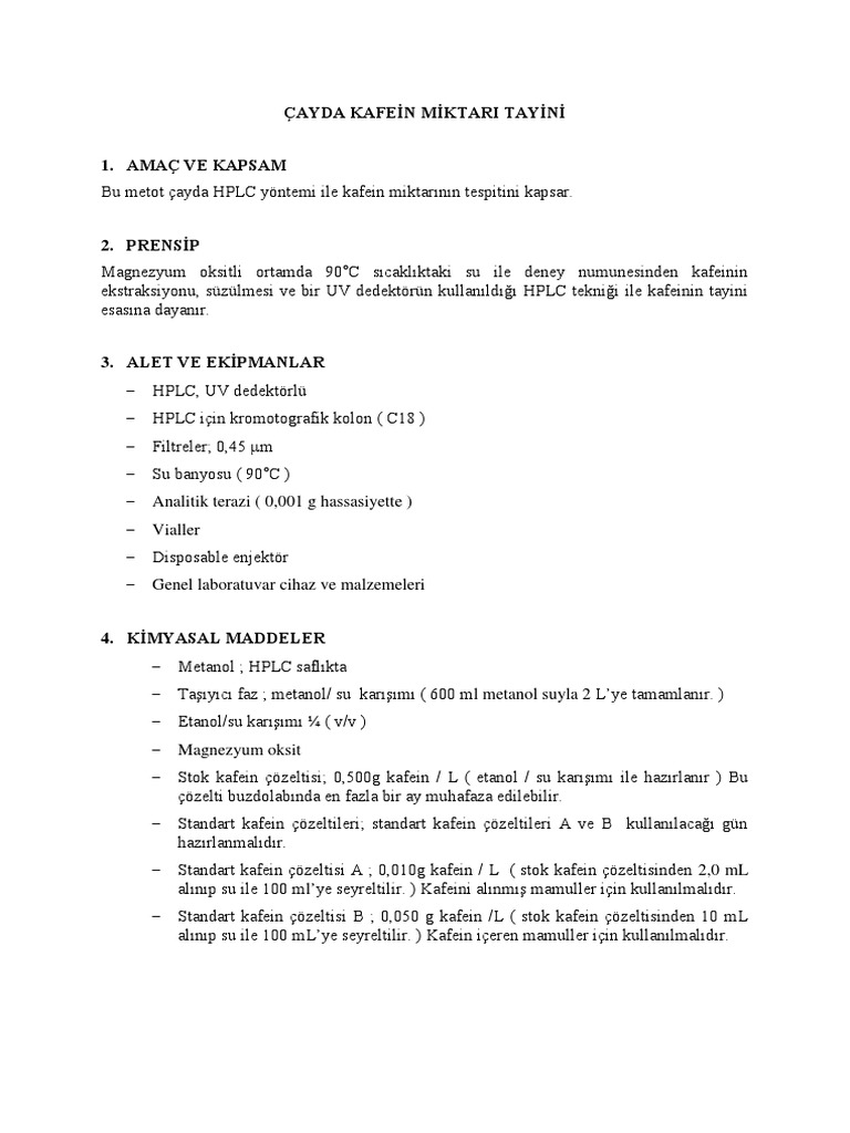 cayda kafein miktari tayini